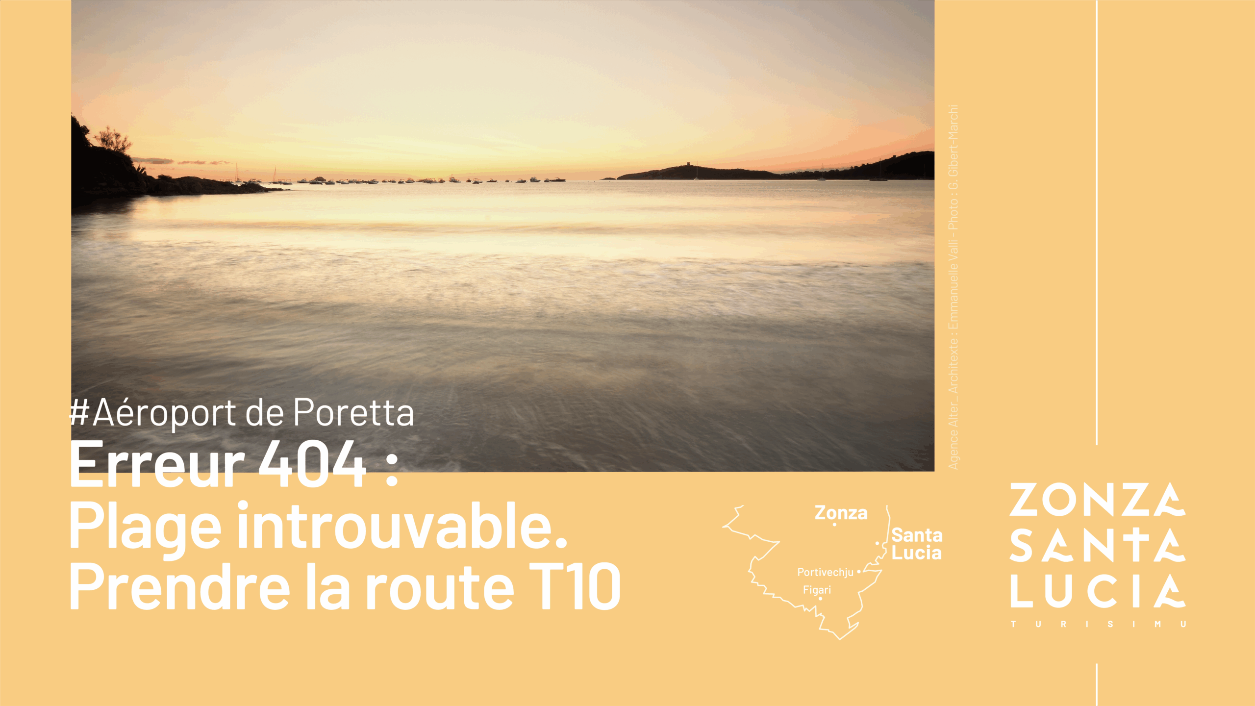 Une campagne de notoriété qui s’affiche à l’aéroport de Bastia-Poretta pour attirer les voyageurs vers Zonza Santa Lucia di Portivechju, qui ne connait pas la même notoriété que sa voisine Portivechju.